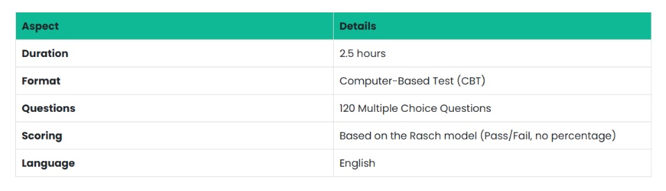 The exam includes 120 MCQs, with 90% contributing to your final score and 10% used for calibration.